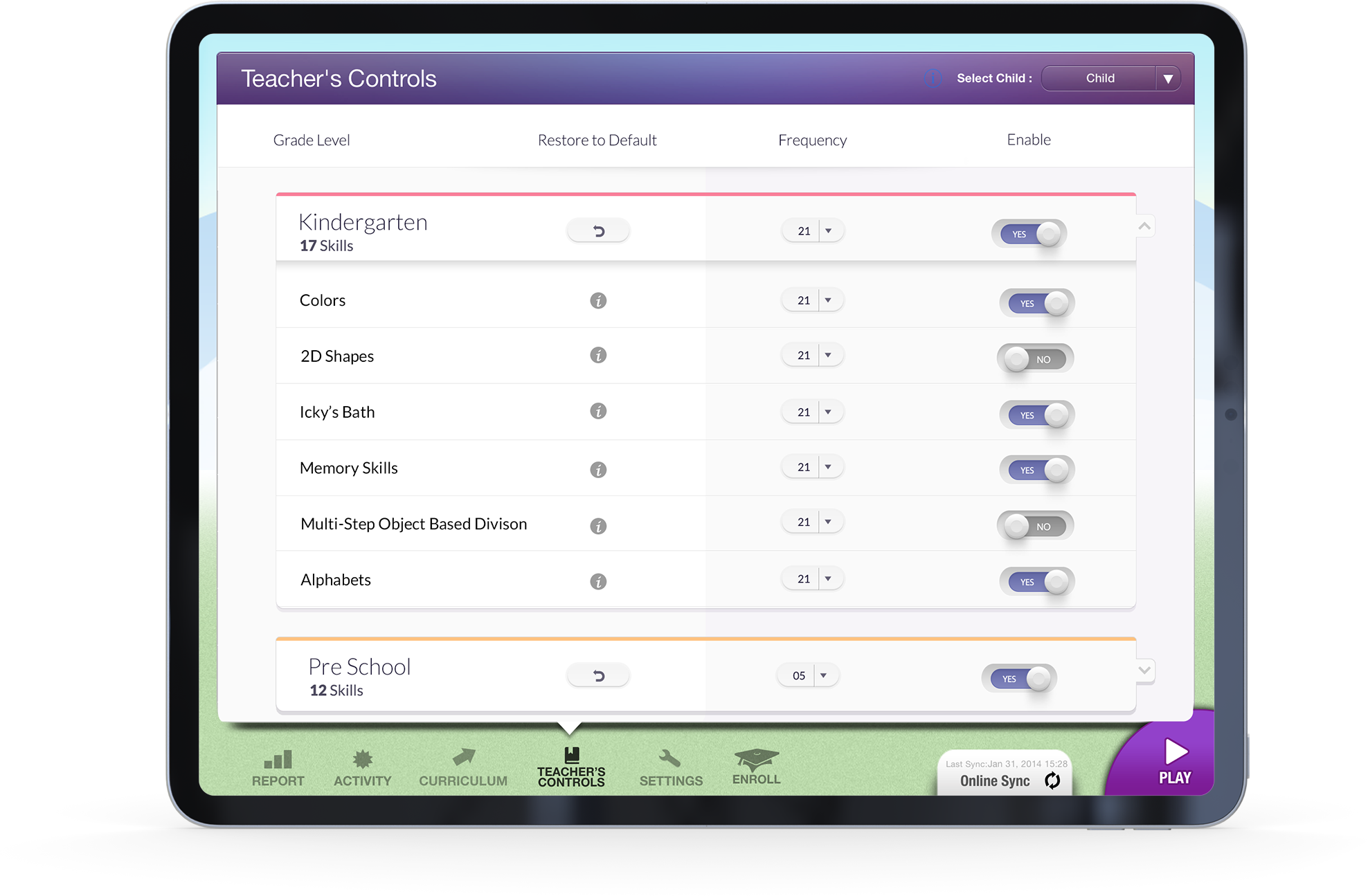 The Teacher’s Controls gave educators and parents autonomy to adjust learning content: