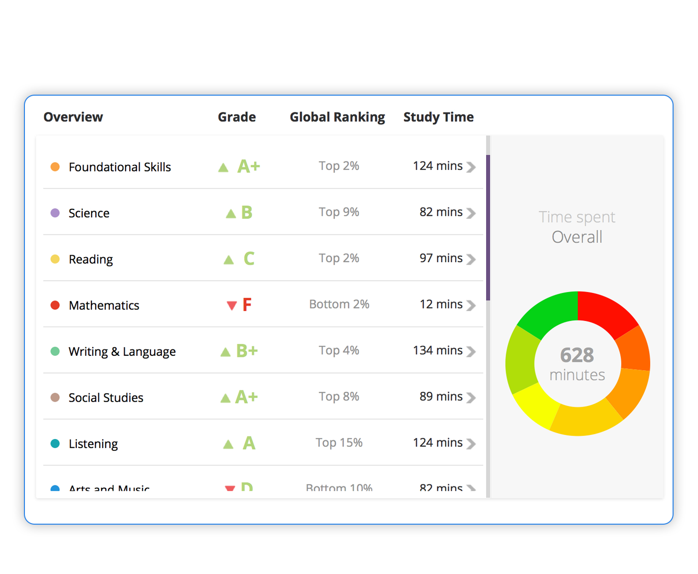 Outcome: Parents could instantly grasp how their child was performing, where they excelled and where they needed more practice.